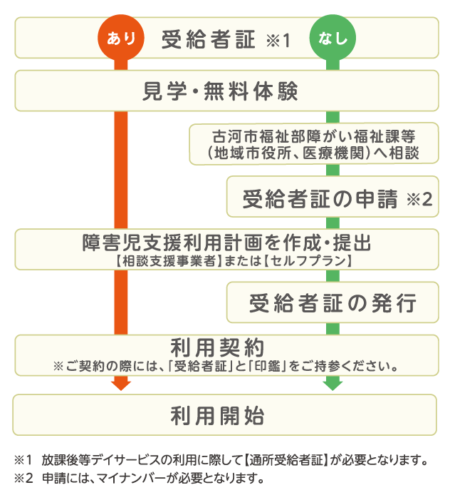 児童発達支援*・放課後等デイサービスは市区町村発行の受給者証があれば9割が自治体負担となり、1割が自己負担となる制度です。
